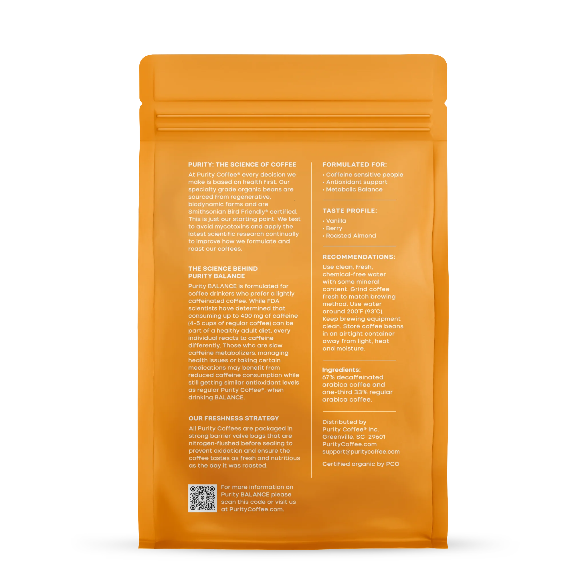 Purity Coffee® contains only high-quality Arabica coffee beans with no additives or allergens.